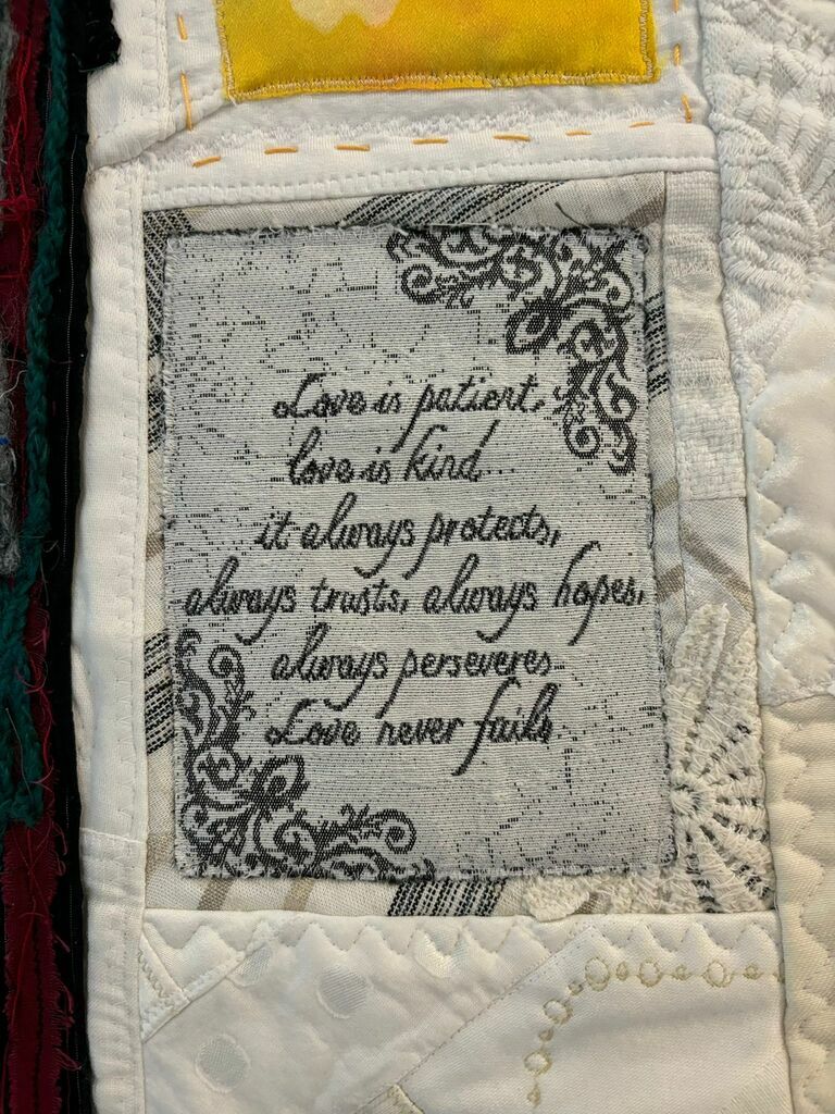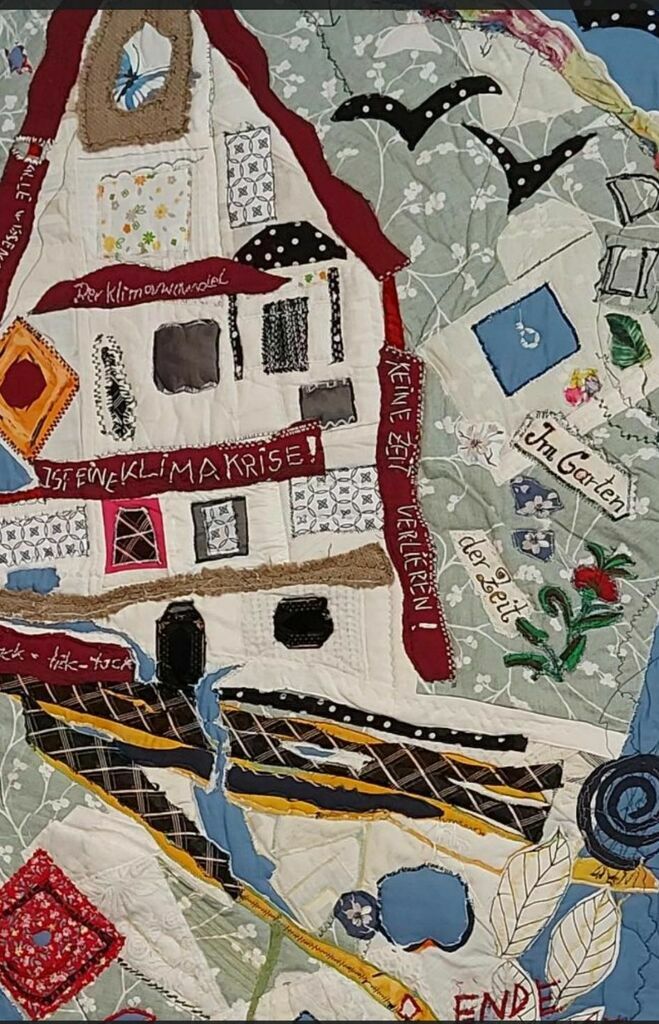 Die Werke umfassten Textilarbeiten, Holzcollagen und Malerei, die eindringlich die Beziehung zwischen Mensch und Natur, Zeit und Veränderung beleuchten. Auf ästhetische Weise hinterfragt die Designerin und Malerin unsere Lebensweisen und die Grundmechanismen der Gesellschaft. Gleichzeitig machen die Arbeiten Hoffnung, denn: Der Garten der Zeit lässt sich gestalten.