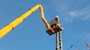 Foto: Hans Peter Rieder – Demontage des Storchennestes auf dem Fahrleitungsmast