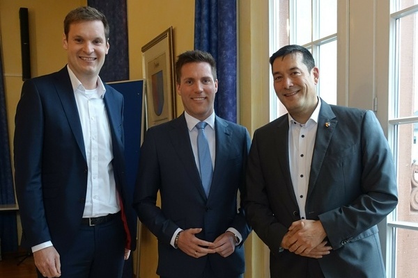 Bild von links: CDU-Kreisvorsitzender und Bundestagsabgeordneter Yannick Bury, CDU-Landtagsfraktionsvorsitzender Manuel Hagel, Bürgermeister Markus Hollemann. Foto: Danielle Clark, Gemeinde Denzlingen