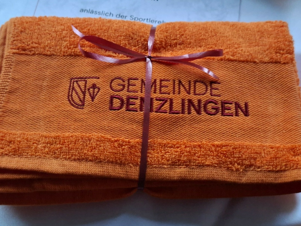Eine Premiere gab es bei den Präsenten: Passend zur neuen Corporate Identity der Gemeinde Denzlingen erhielten die Sportlerinnen und Sportler in diesem Jahr zu ihrer Urkunde ein hochwertiges Denzlingen-Handtuch im neuen Design.
