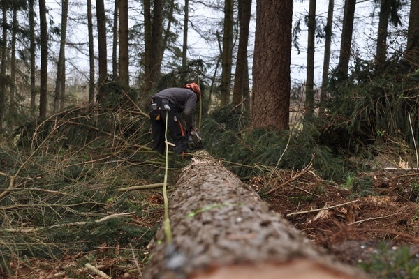 Baumfällarbeiten und Durchforstung im Waldstück im Heidach I entlang Lossele