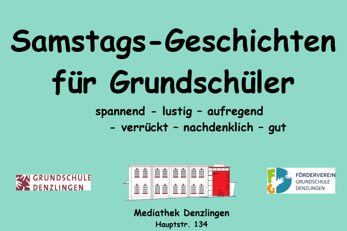 Der Grundschulförderverein lädt alle Denzlinger Grundschulkinder herzlich zu den Samstagsgeschichten in der Mediathek ein. Eine Stunde lang lesen Ehrenamtliche den Grundschülern in gemütlicher Runde eine spannende Geschichte vor. Eine Anmeldung ist nicht erforderlich.