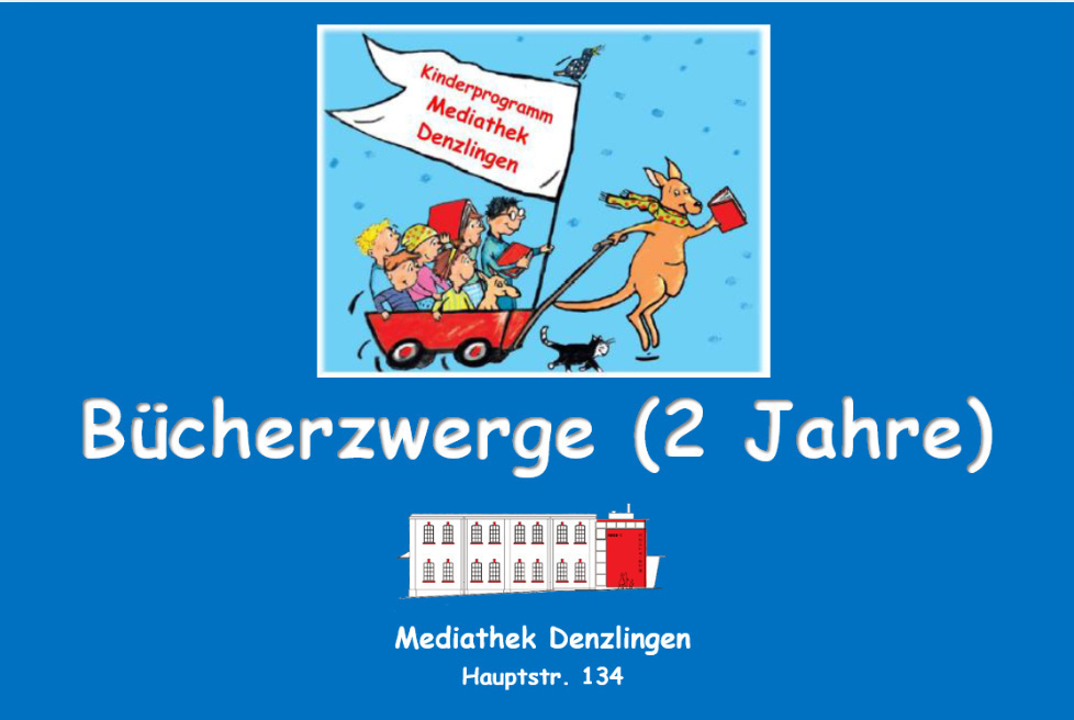 Beim monatlichen Treffen der Bücherzwerge wird für 2-jährige Kinder (+ Begleitperson) ein Bilderbuch mit vielen Spielen und Liedern lebendig. Da die Teilnehmerzahl begrenzt ist, bitten wir um Anmeldung per E-Mail an mediathek@denzlingen.de.